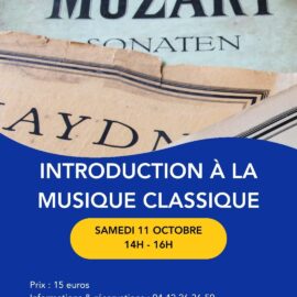 Atelier introduction à la musique classique (14h – 16h) Tous les mois venez éveiller votre curiosité et votre appréciation de la musique classique à travers l’écoute et un survol de son contexte historique... Pour en savoir plus