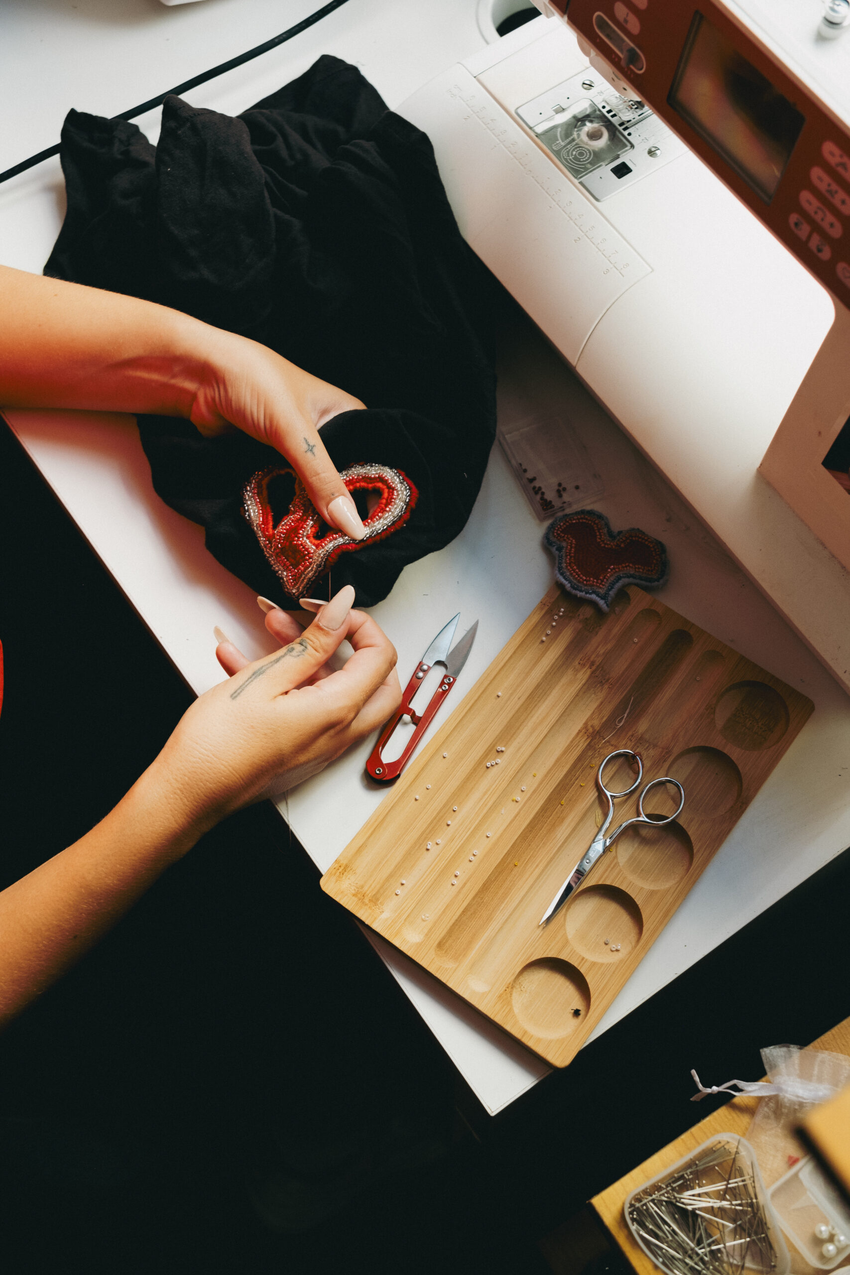 Les participant·es découvrent la broderie de perles en s’amusant à donner une seconde vie à un de leur vêtement ou à créer un écusson, sans prérequis. Couleurs, perles et imagination sont au rendez-vous pour créer une pièce singulière et responsable. Un moment apaisant et créatif pour apprendre, partager et faire rimer mode & écologie. Chacun·e repart avec sa création unique.